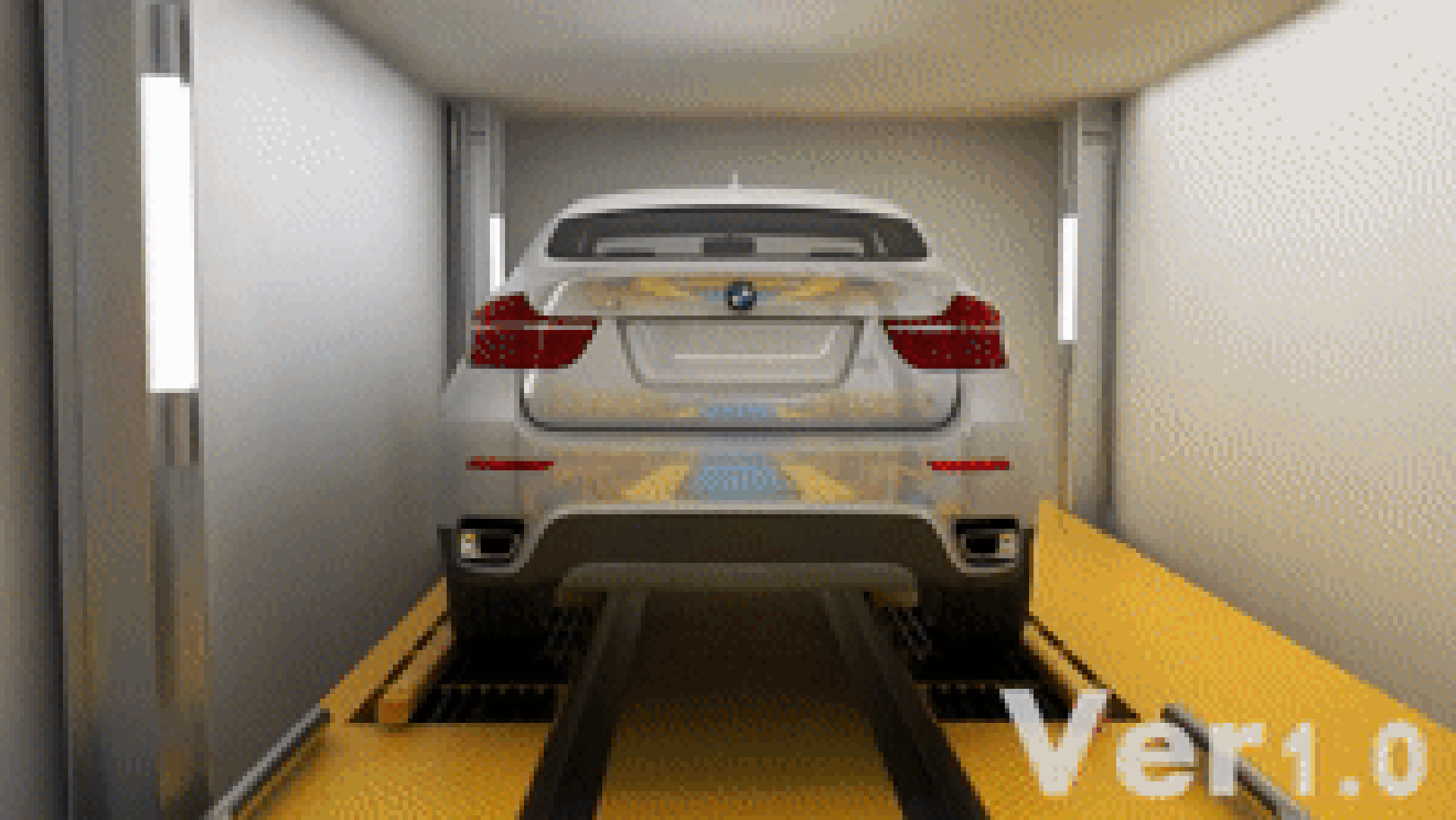 AUTOMATIC CAR PARKING has car elevator and fork sliding device which carries a car to specified level and store a car to reserved parking rack. As a car is stored inside building, security is very high and a car is protected from heat by sunshine and dirt by rain or air pollution.